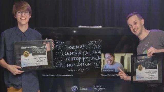 Nebraska-Lincoln Üniversitesi’nden 21 yaşındaki bilgisayar mühendisliği öğrencisi Lufe Farritor, Herculaneum dokümanlarındaki bir kelimeyi çözen ilk insan olmayı başardı ve 40 bin dolarlık mükafatı kazandı.