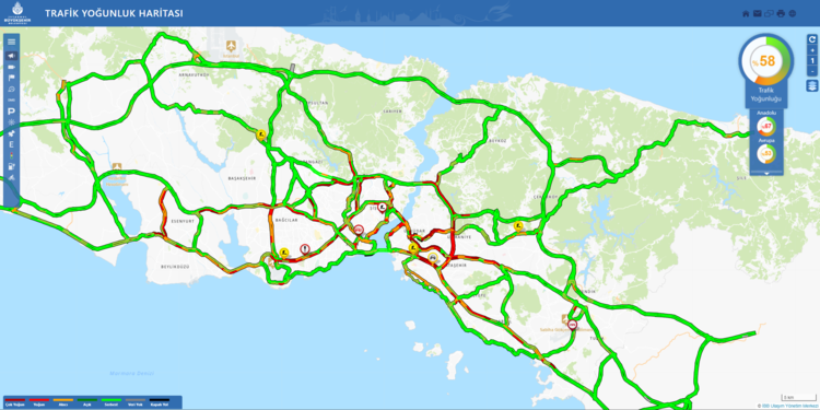İBB Cep Trafik Haritası verilerine göre, sabah erken stlerinde trafik yoğunluğu kent genelinde yüzde 60’a ulaşırken, Avrupa Yakası’nda yüzde 53, Anadolu Yakası’nda ise yüzde 69 ölçüldü.