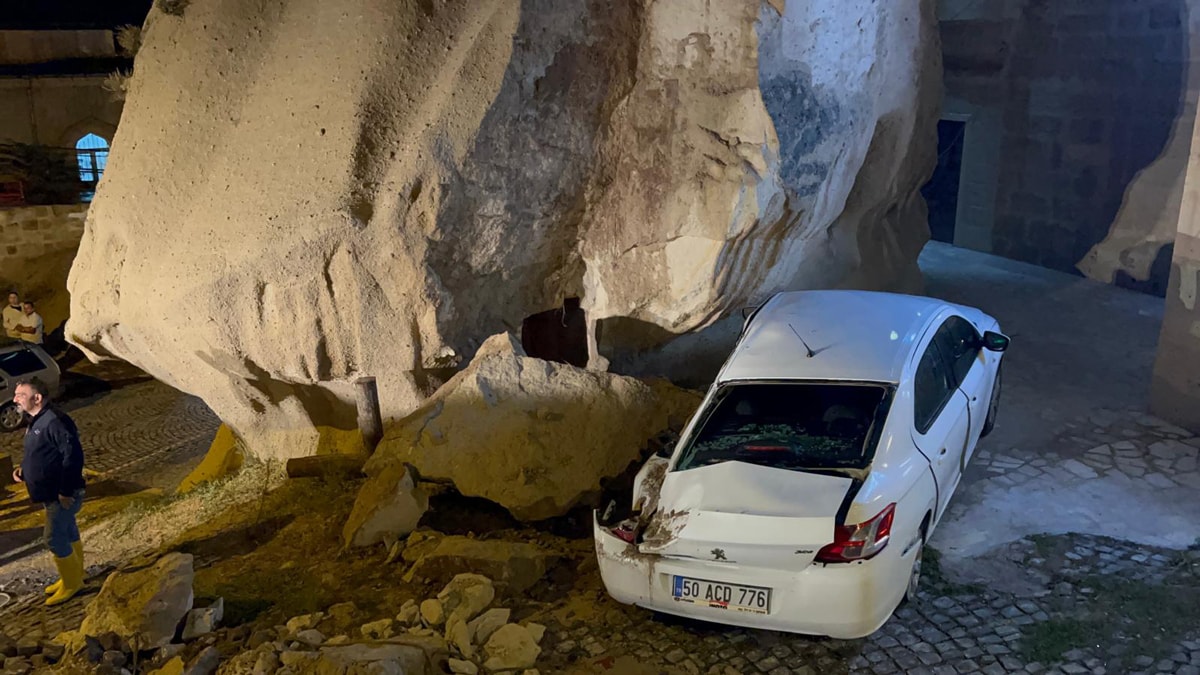 Nevşehir’in merkez Göreme Beldesi’nde öğlenden sonra başlayan sağanak, günlük ömrü olumsuz etkiledi. Kısa sürede şiddetini artıran yağış sele neden oldu. Sel nedeniyle cadde ve sokaklar suyla dolarken, kimi arabalar peribacalarından düşen kaya kesimleri nedeniyle zarar gördü. Ayrıca, Çavuşin Köyü 2’nci küme mevkinde yağmurun tesiriyle peribacası yıkıldı.