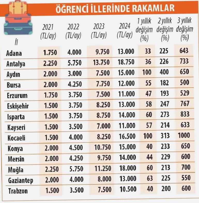 Hürriyet’in aktardığına göre, İstanbul’un öğrenciler tarafından tercih edilen 9 ilçesinde, en uygun ortalama fiyat 20 bin TL ile Avcılar’da bulunuyor. Ankara ve İzmir’de de benzer durumlar gözlenirken, bilhassa itibarlı üniversitelerin bulunduğu Ankara’nın Bahçelievler, Beşevler benzeri semtlerinde kira fiyatları yükseliyor. İzmir’de ise öğrencilerin tercih ettiği ilçelerde son bir yılda kira artışı yüzde 90’ı geçmiş durumda.